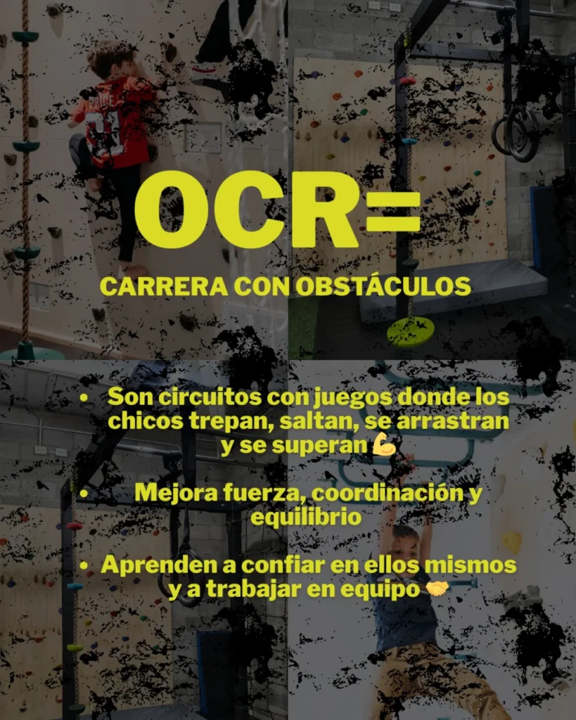 Es una disciplina que combina ejercicio físico, diversión y superación personal. A través de circuitos diseñados con diferentes pruebas: trepar, saltar, arrastrarse, colgarse, correr y balancearse; los chicos desarrollan habilidades únicas mientras juegan.